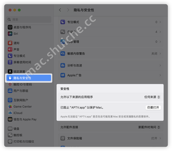 MacOS 15 系统打开任何来源教程:https://mac.shuiche.cc/article/63