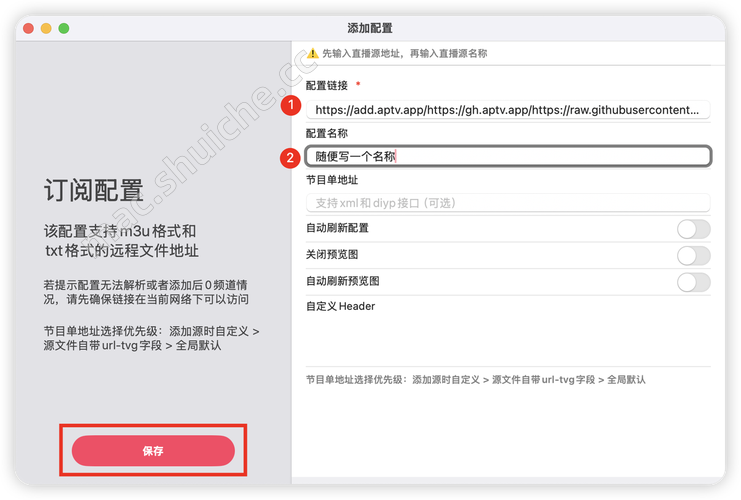 https://add.aptv.app/https://gh.aptv.app/https://raw.githubusercontent.com/Kimentanm/aptv/master/m3u/iptv.m3u名称随便填,然后点击保存