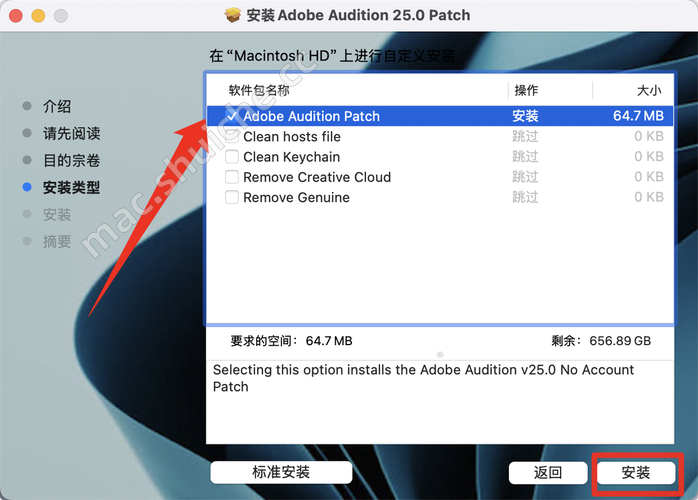 只勾选 Adobe Audition Patch,然后点击安装(不要自由发挥,跟着教程操作)