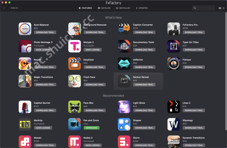 此外,FxFactory是配备了直观的界面,让您可以浏览并管理安装在系统上的所有的效果。