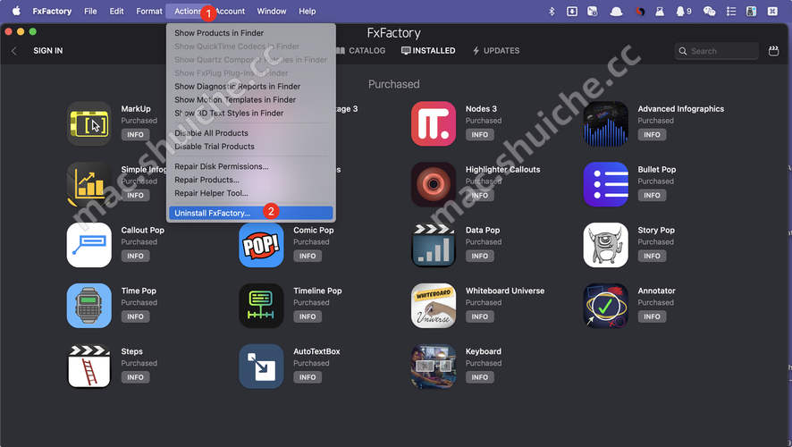 安装完会自动打开FxFactory,下载自己需要的插件,插件下载好后,退出软件