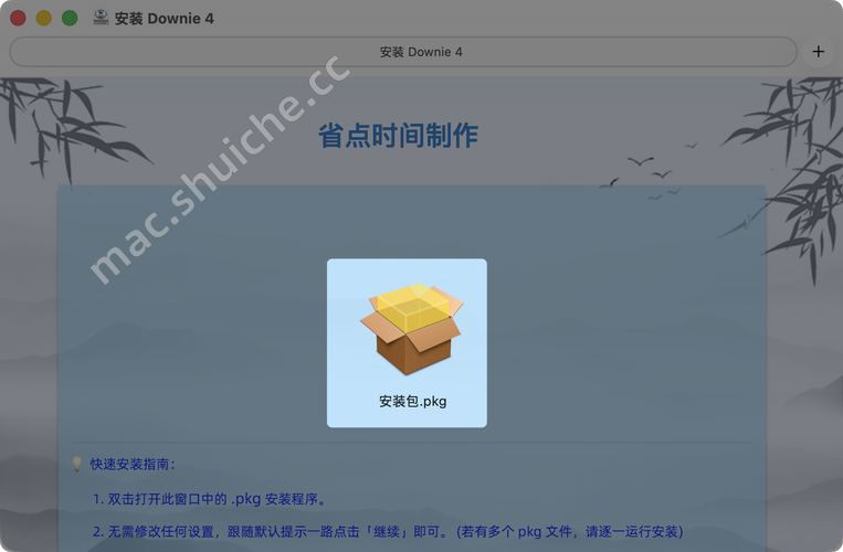 打开安装包,双击运行【安装包.pkg】文件,跟着提示默认安装即可