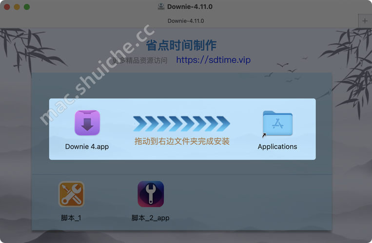 打开镜像包,拖动【Downie 4】到应用程序中即可