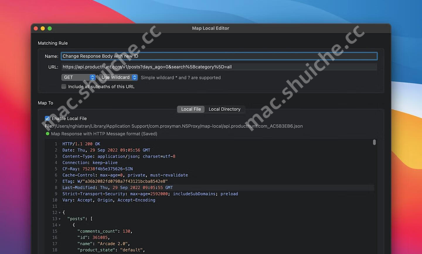 Map Local Tool 允许开发人员使用本地文件模拟响应。无需等待后端,直接修改响应状态码、Header、Body,提高开发速度。