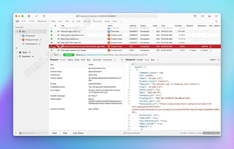 Proxyman 是一个方便的工具,可帮助您调试来自应用程序、域、远程设备和 iOS 模拟器的 HTTps 请求。